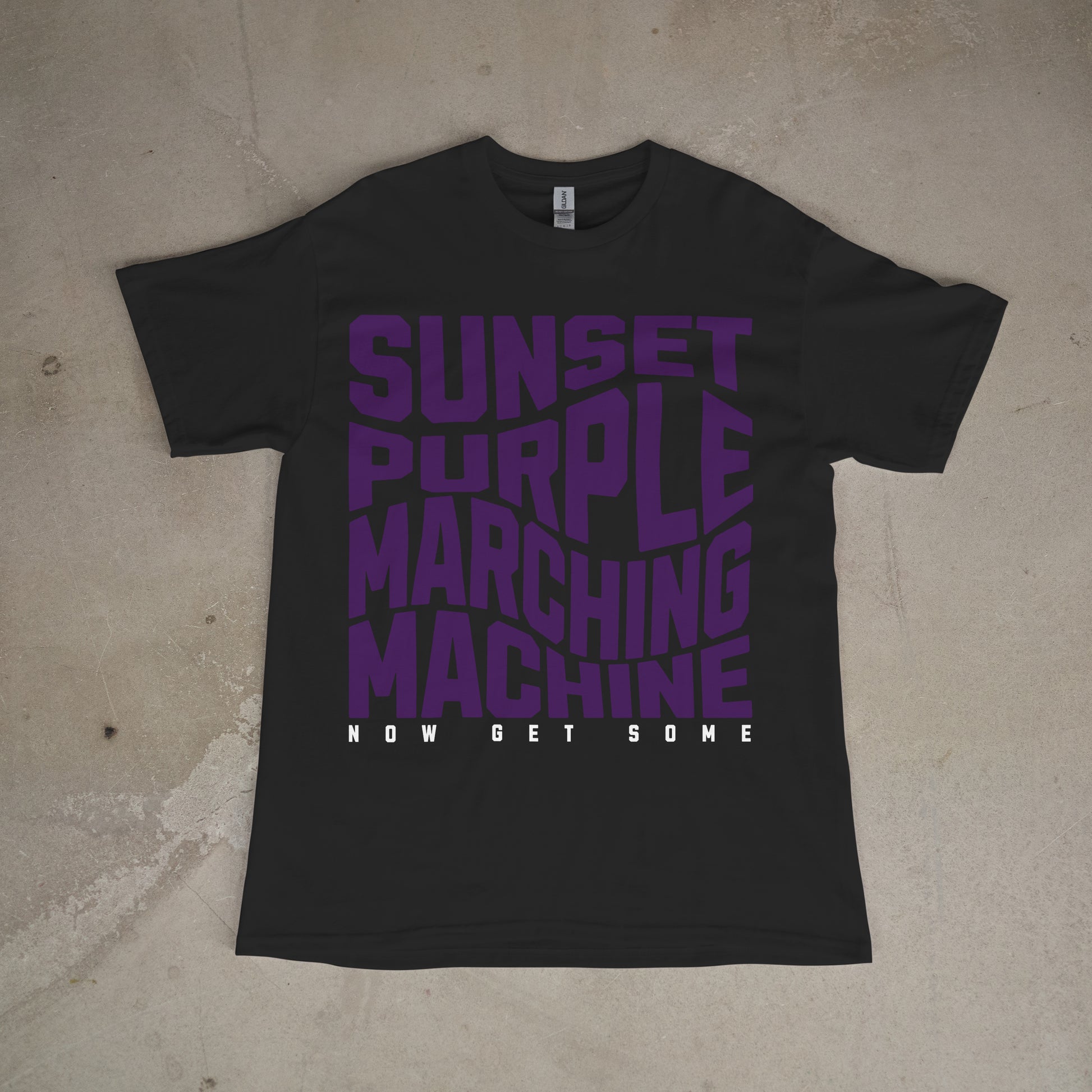 The Sound of Sunset design is a bold tribute to the power and pride of the Purple Marching MACHINE. With distorted block lettering stacked tall and tight, this design captures the movement, rhythm, and raw energy that Sunset Bison brings to every field, parade, and performance. “Now Get Some” seals it with attitude, the kind that can only come from Oak Cliff.